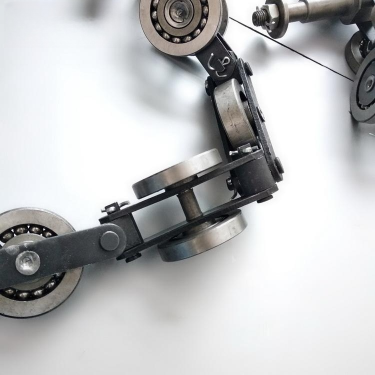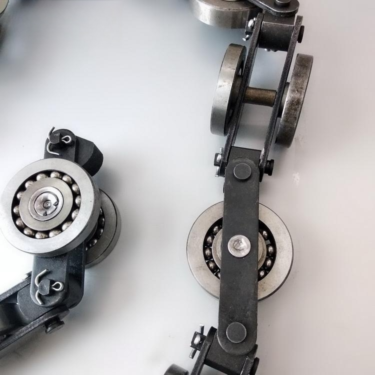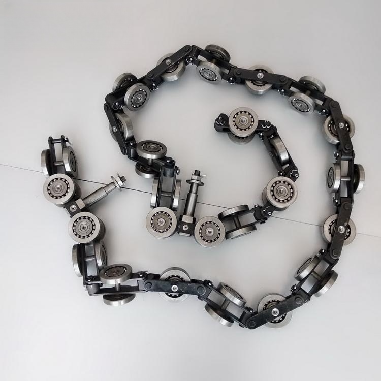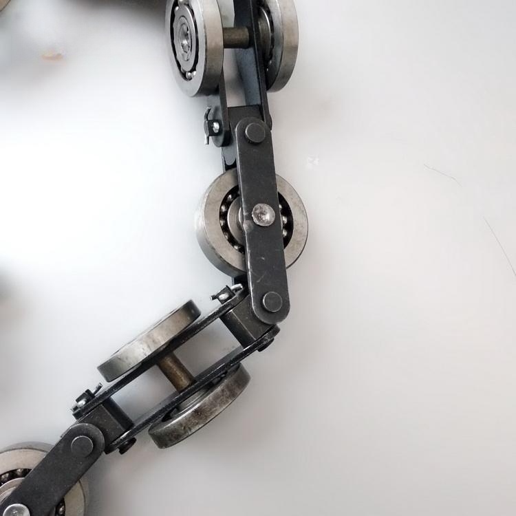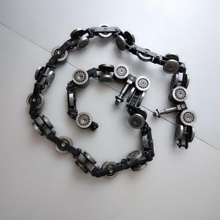 Formula Rail: 100 × 100 × 6 (5) mm Note: the chain plate is made of 40 manganese high strength alloy steel, and the ball of bearing roller is filled with high temperature grease.